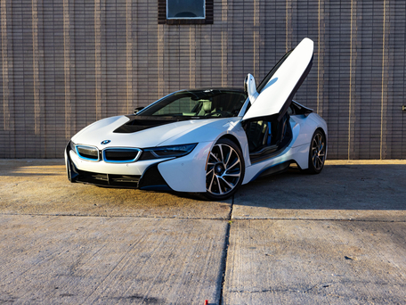 Its sleek, aerodynamic look and dramatic silhouette make it stand out on the road, while the low‑slung body and lightweight construction help enhance handling and performance. Inside, the i8 offers a modern cabin with premium materials, advanced infotainment, and comfortable seating for four people.